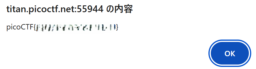 登録したbookmarkletをクリックすると、JavaScriptのアラートが表示され、フラグが表示されます。