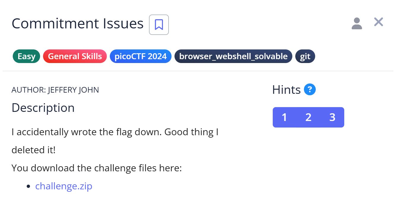 picoCTFの「Commitment Issues」という問題の解説記事です。