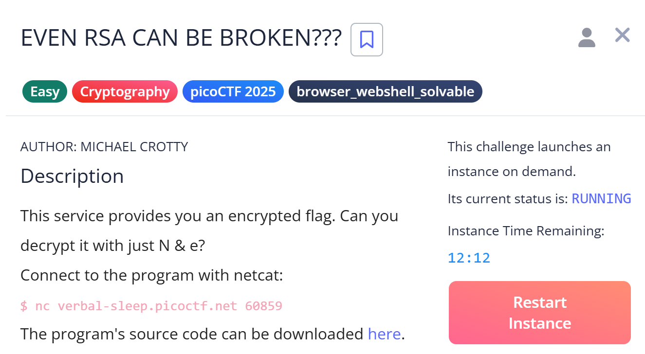 picoCTFの「EVEN RSA CAN BE BROKEN???」問題では、出力された