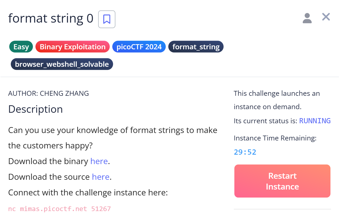 format string 0 は、printf(user_input) という典型的なミスから起きる フォーマット文字列脆弱性の入門問題でした。▼ポイントは以下の通りです。