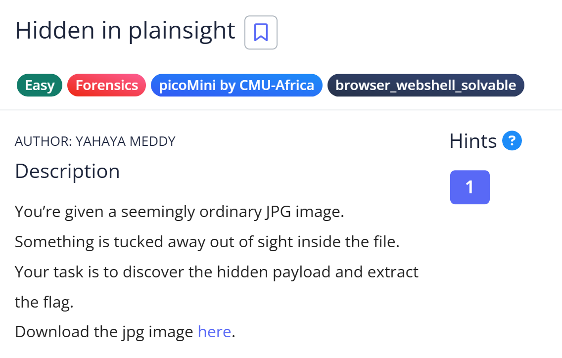 picoCTFの「Hidden in plainsight」という問題の解説記事です。