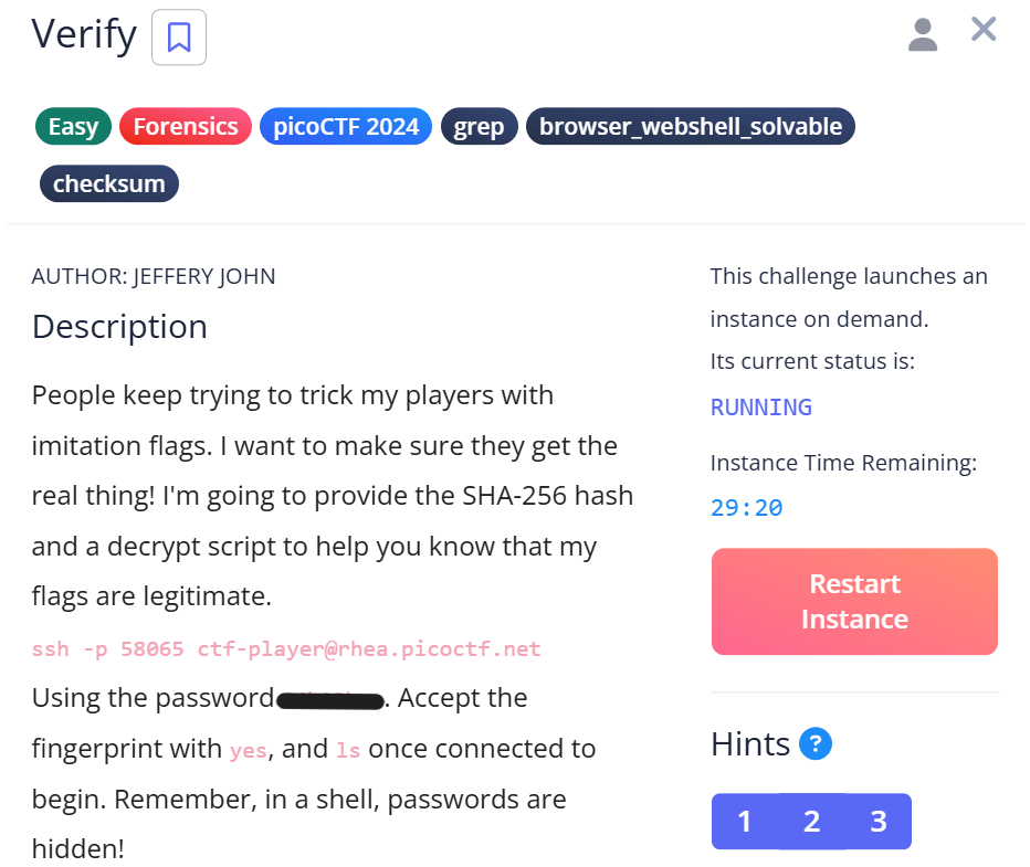 picoCTFの「Verify」という問題の解説記事です。