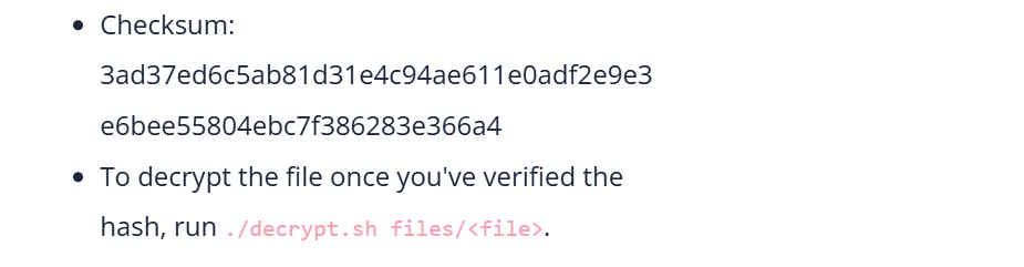 checksum.txt decrypt.sh files