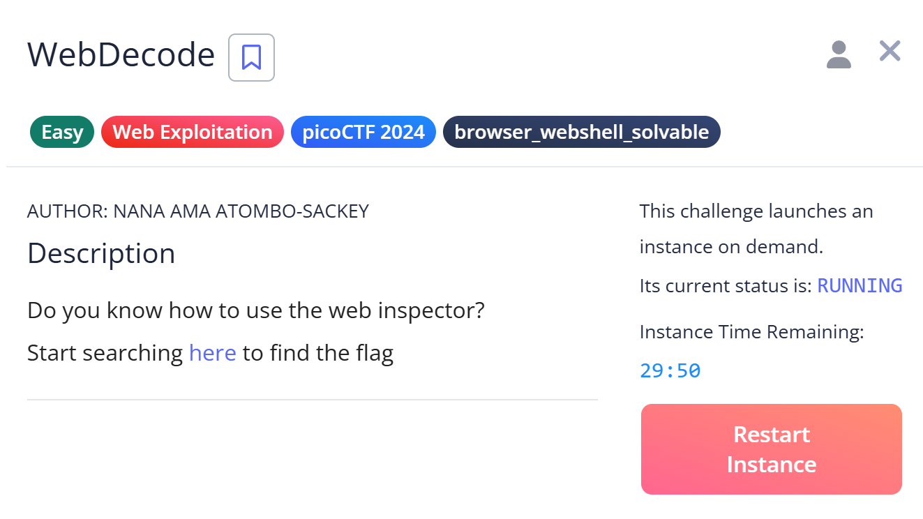 picoCTFの「WebDecode」では、ページ(ABOUTセクション)のHTMLに埋め込まれていたBase64文字列をデコードすることでフラグを取得できました。