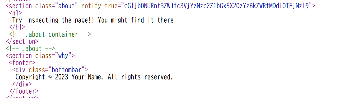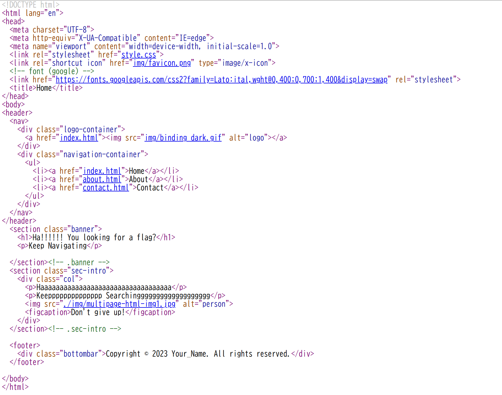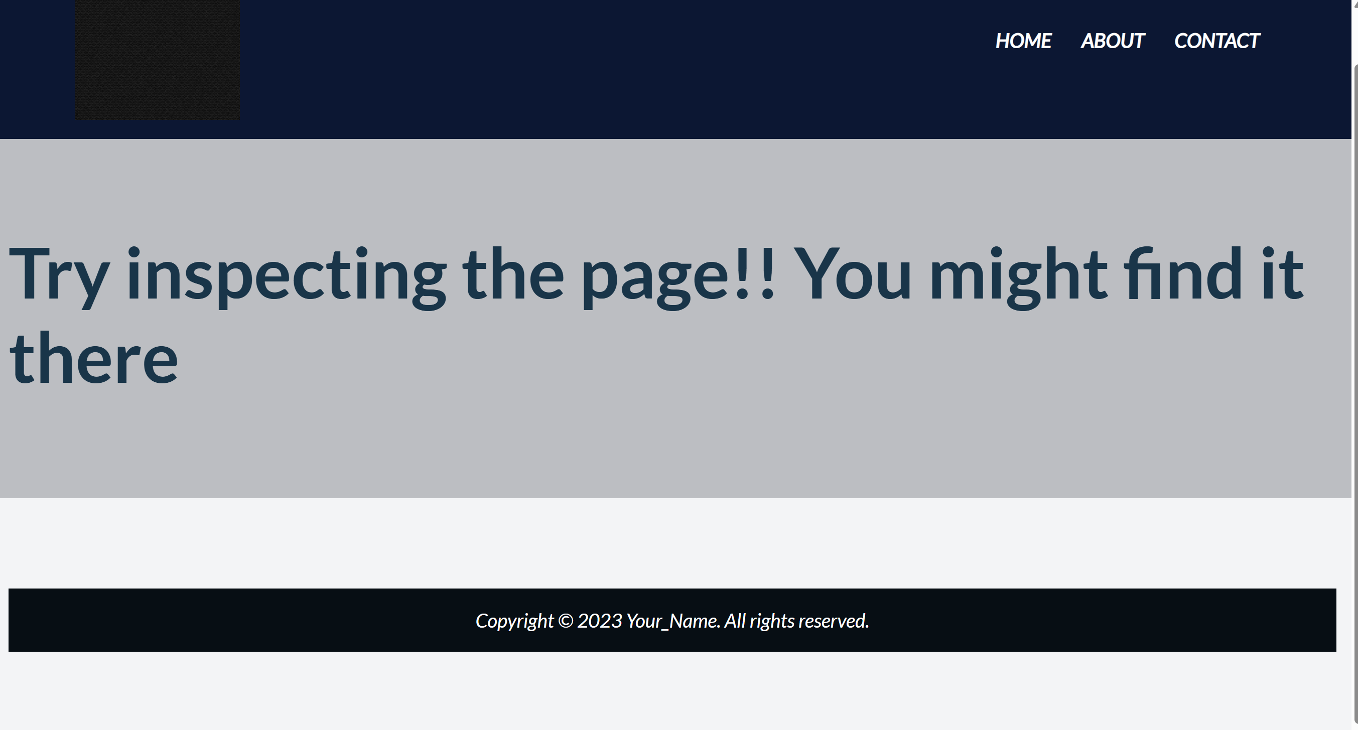 問題文のリンクからWebサイトにアクセスし、開発者ツール(DevTools)を使って調査を行います。 Webサイトは「HOME」「ABOUT」「CONTACT」の3つのセクションで構成されているようです。